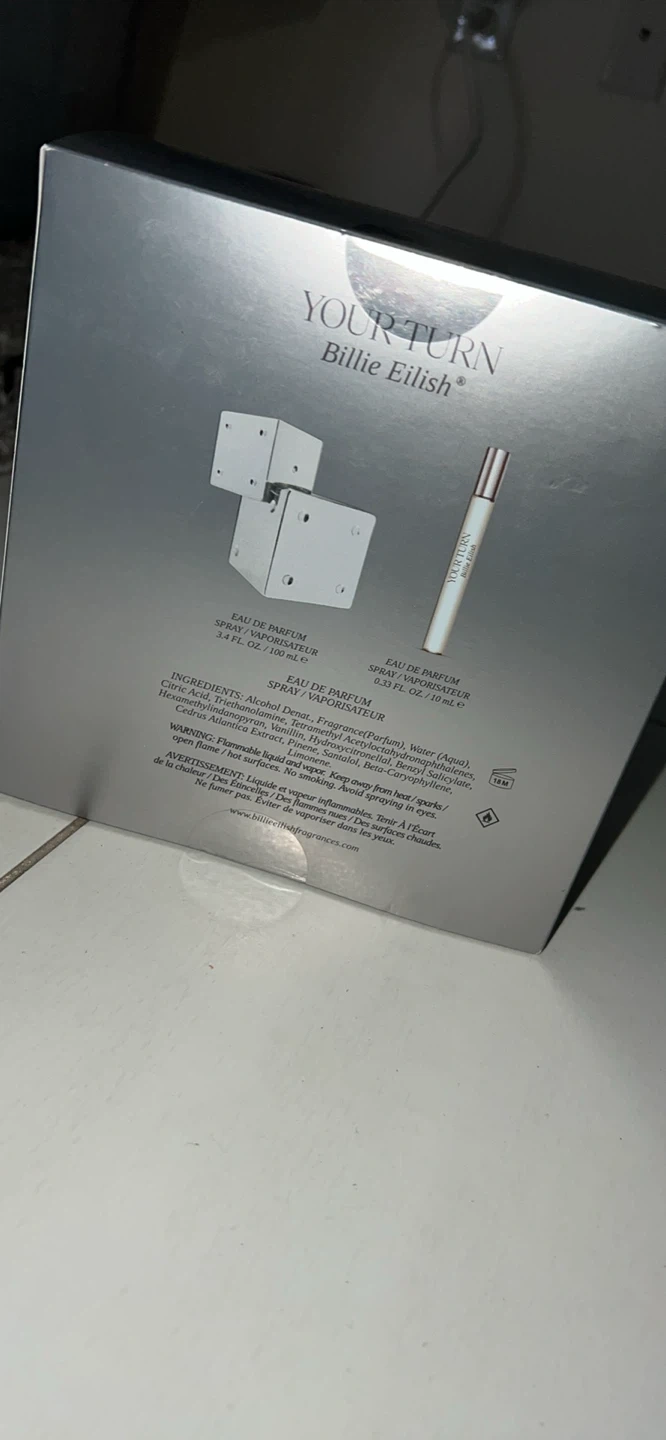 Selling a brand new Billie Eilish Your Turn Eau de Parfum set! It includes a 3.4 FL OZ/100 mL spray and a 0.33 FL OZ/10 mL spray. It comes in the original box