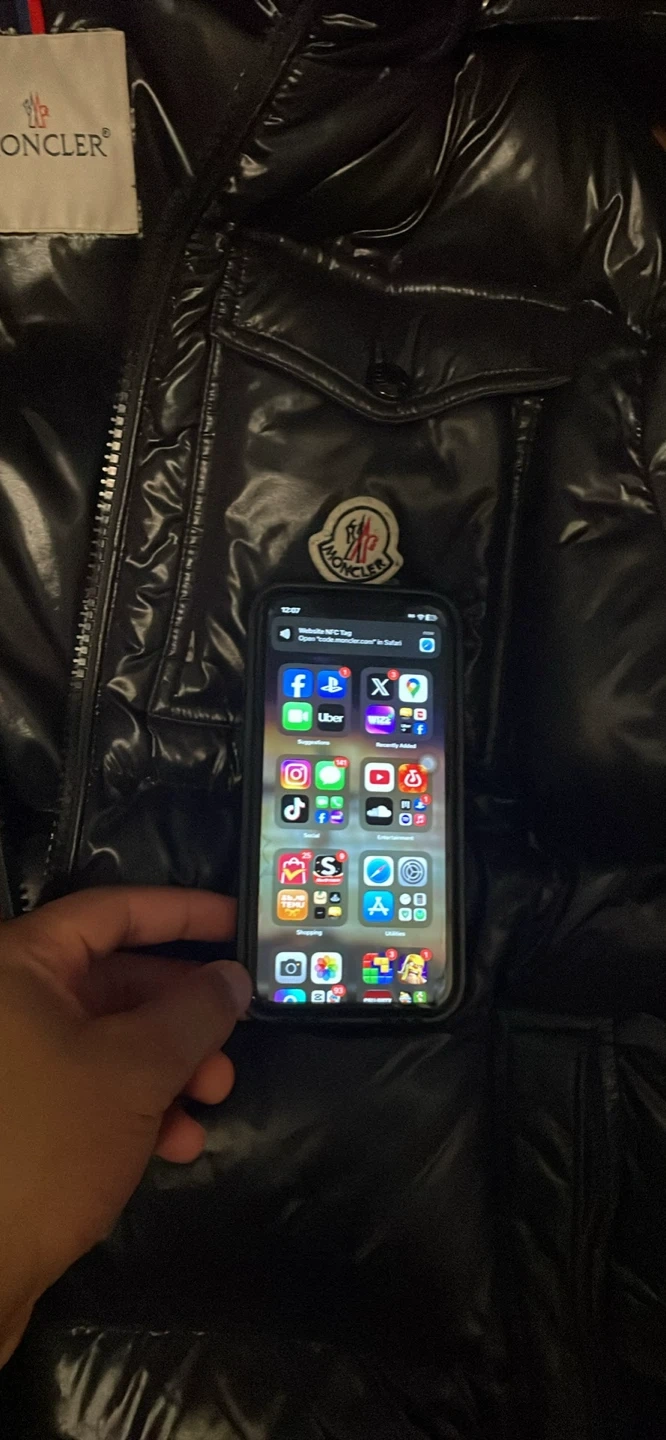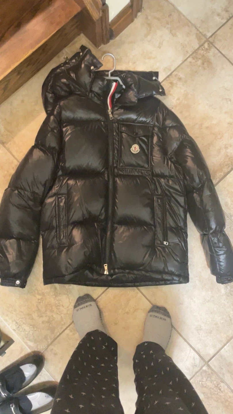 Here's a Moncler black puffer jacket! It's in great condition and ready to keep you warm this winter. The jacket features the classic Moncler logo and a stylish design. Feel free to ask any questions!