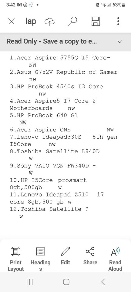 Buy & SellLaptops for parts: Acers, Asus, Rogue, HPs, Sony, ProBook, ToshiLaptops for parts: Acers, Asus, Rogue, HPs, Sony, ProBook, Toshi$1Selling laptops for parts: Acers, Asus, Rogue, HPs, Sony VAIO, ProBook, Toshiba (look at the list). Some of these still function, as is.WHERE TO MEETCheck LocationView MapSELLERverifiedarkaWestminster600 reviews0 chats·0 favorites·4 views