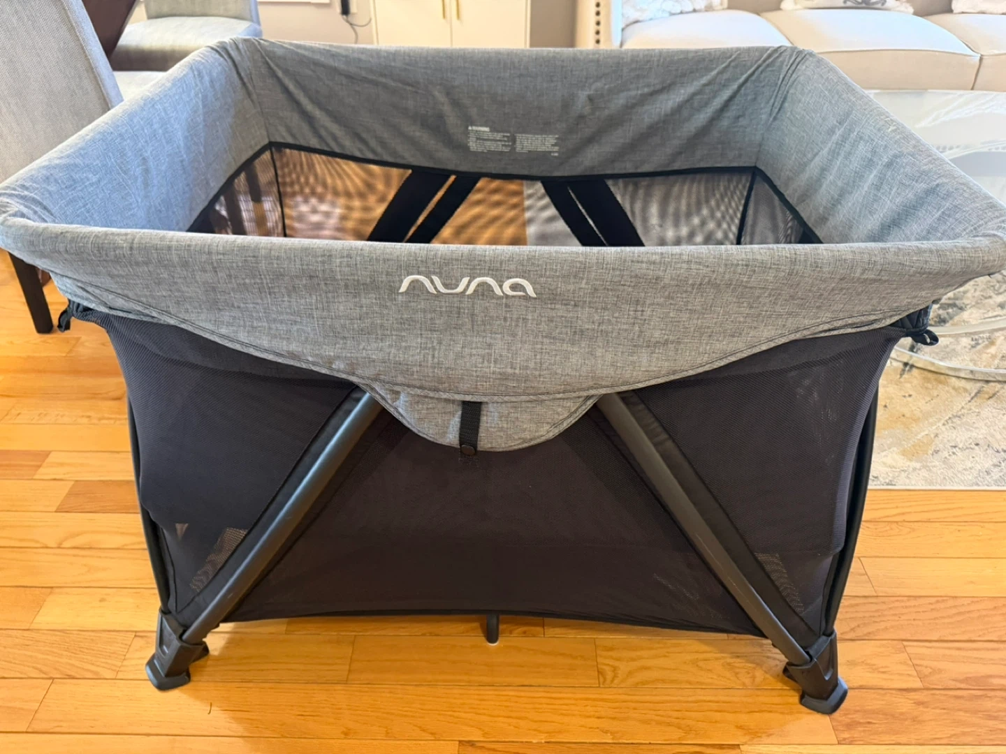 Selling a Nuna Sena Aire playard in great condition! It's perfect for travel or as an extra sleeping space for your little one. The playard is grey and features a mesh design for breathability. It's lightweight and easy to fold up for storage or transport.