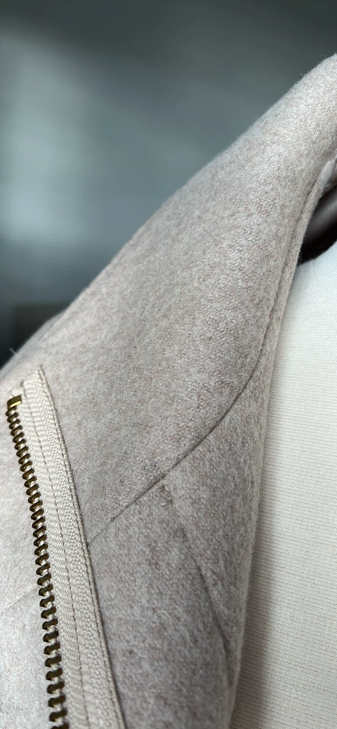 Selling a J.Crew wool blend coat in size 2, but fits bigger. It's a beautiful, light beige colour with a unique asymmetrical zip. Perfect for fall!