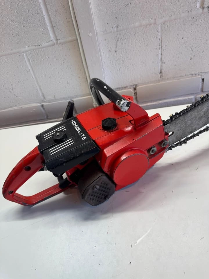 Selling a vintage Homelite XL-1 gas chainsaw in used condition. Has some cosmetic wear, but chain & bar are intact and it turns over well (will benefit from a tune-up). Ideal for a DIY woodworker or collector.