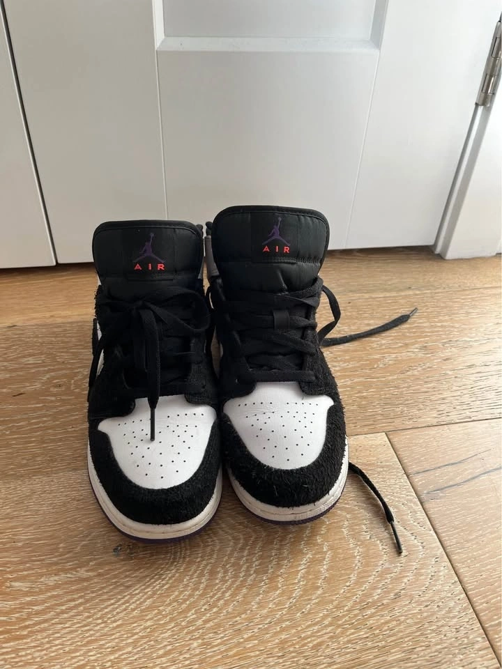 Selling the pictured Black, White and Purple velvet Jordan 1 mids.