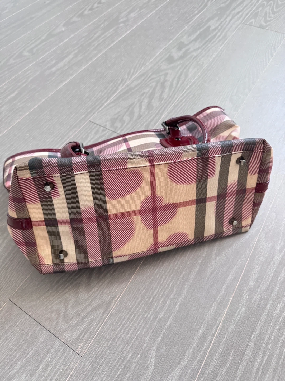 Selling a Burberry tote bag in good condition! It's a stylish bag with a unique pattern. The bag features a heart-shaped charm and has a spacious interior with a zipper pocket. Perfect for everyday use!