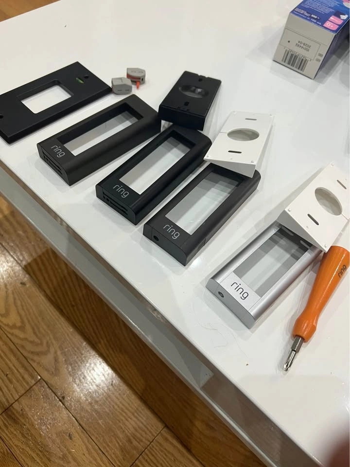 Upgrade the look and angle of your Ring Video Doorbell with this bundle of genuine Ring accessories, including multiple interchangeable faceplates (black and silver) plus wedge/corner style mounting plates to fine‑tune your viewing angle for better motion detection and visitor visibility. New Ring faceplates and wedge or corner kits typically sell for about $20–$25 each before tax, so this set at $15 is a great deal for anyone installing or refreshing a Ring doorbell setup. Perfect if you want a cleaner install, to better frame your doorway, or to match different exterior colours without buying extra pieces individually. All pieces are in excellent condition and ready to mount with standard Ring hardware. Pickup only in Richmond Hill at Yonge & Stouffville.