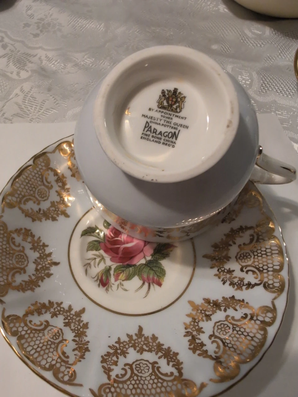 Royal Vale Bone China tea cup and saucer set, made in England. The cup has a beautiful floral design, perfect for afternoon tea or adding to your collection!