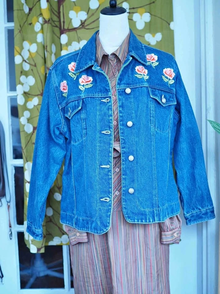 Buy & SellVintage Denim Jean JacketVintage Denim Jean Jacket$40Vintage 80s Bill Blass brand Petite size large jean jacket with cute embroidered rose detail on the front yokeWHERE TO MEETCheck LocationView MapSELLERverifiedHannahNew Toronto752 reviews0 chats·0 favorites·11 viewsSEND CHAT TO SELLERHi Hannah! I’m interested in your listing.Hi Hannah! I’m interested in your listing.Get the Karrot app to chatSign In to chat
