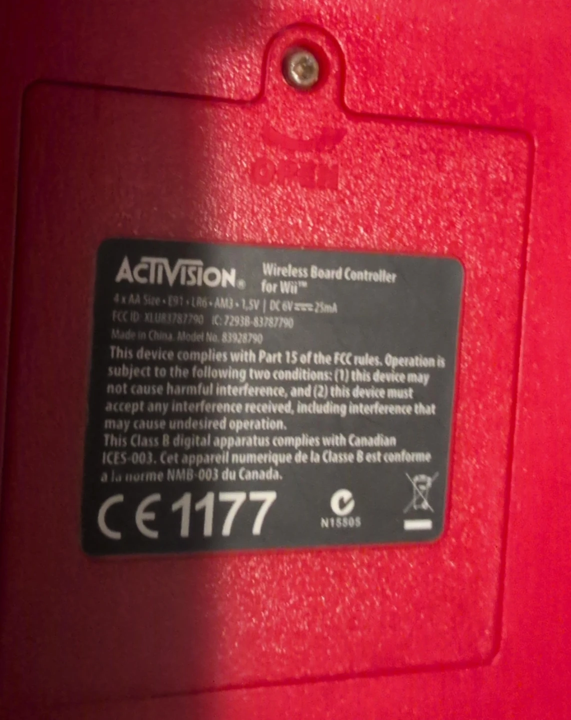 Selling an Activision Tony Hawk Ride wireless skateboard controller for Wii! It requires 4x AA batteries, and the model number is 83928790. This device complies with Canadian ICES-003 standards