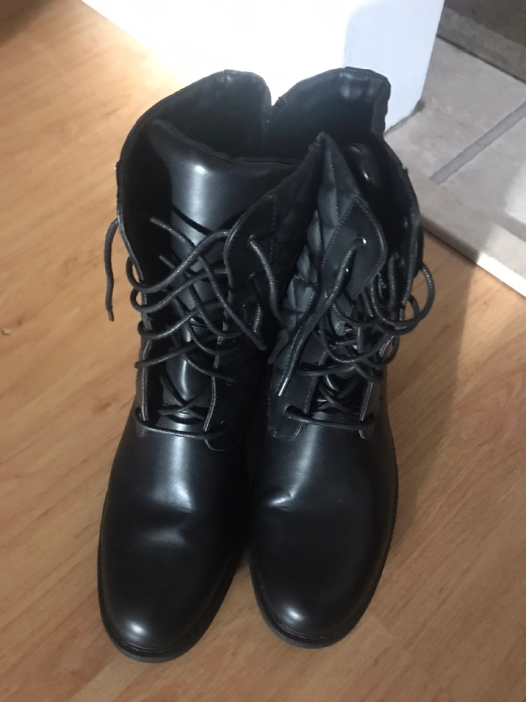 Selling a pair of Skechers lace-up boots in black! They're a size 10 and made with synthetic upper material. The color code is BLK. These boots are perfect for adding a bit of edge to your look