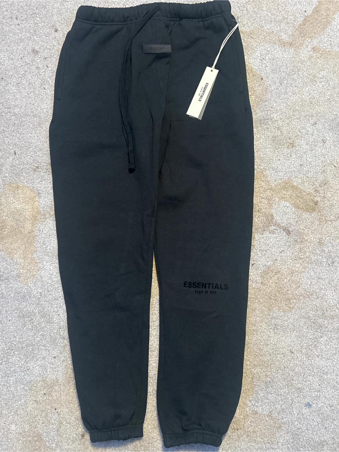 Selling a pair of Essentials Fear of God sweatpants in black. They are a size medium and in great condition! The material is soft and comfortable, perfect for lounging or running errands. Feel free to reach out if you have any questions!