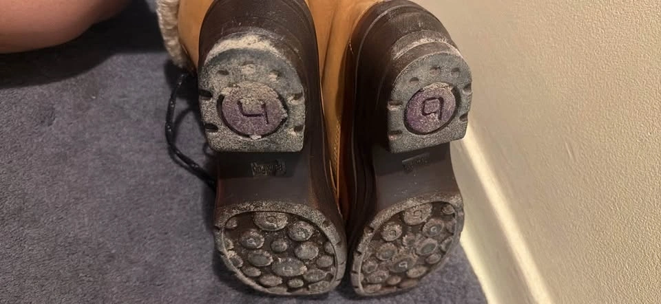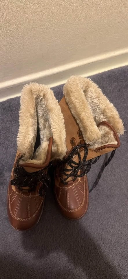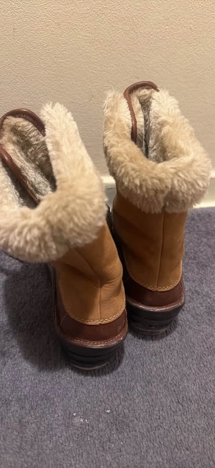 Size 6. Used it for 3 days when we went to blue mountain and never again, a bit too small for me. I usually go for size 6 in boots and shoes but this one fits small so id say size 5 would fit this the best. Warm and in great condition. Honey/whiskey color. Faux shearling lining.