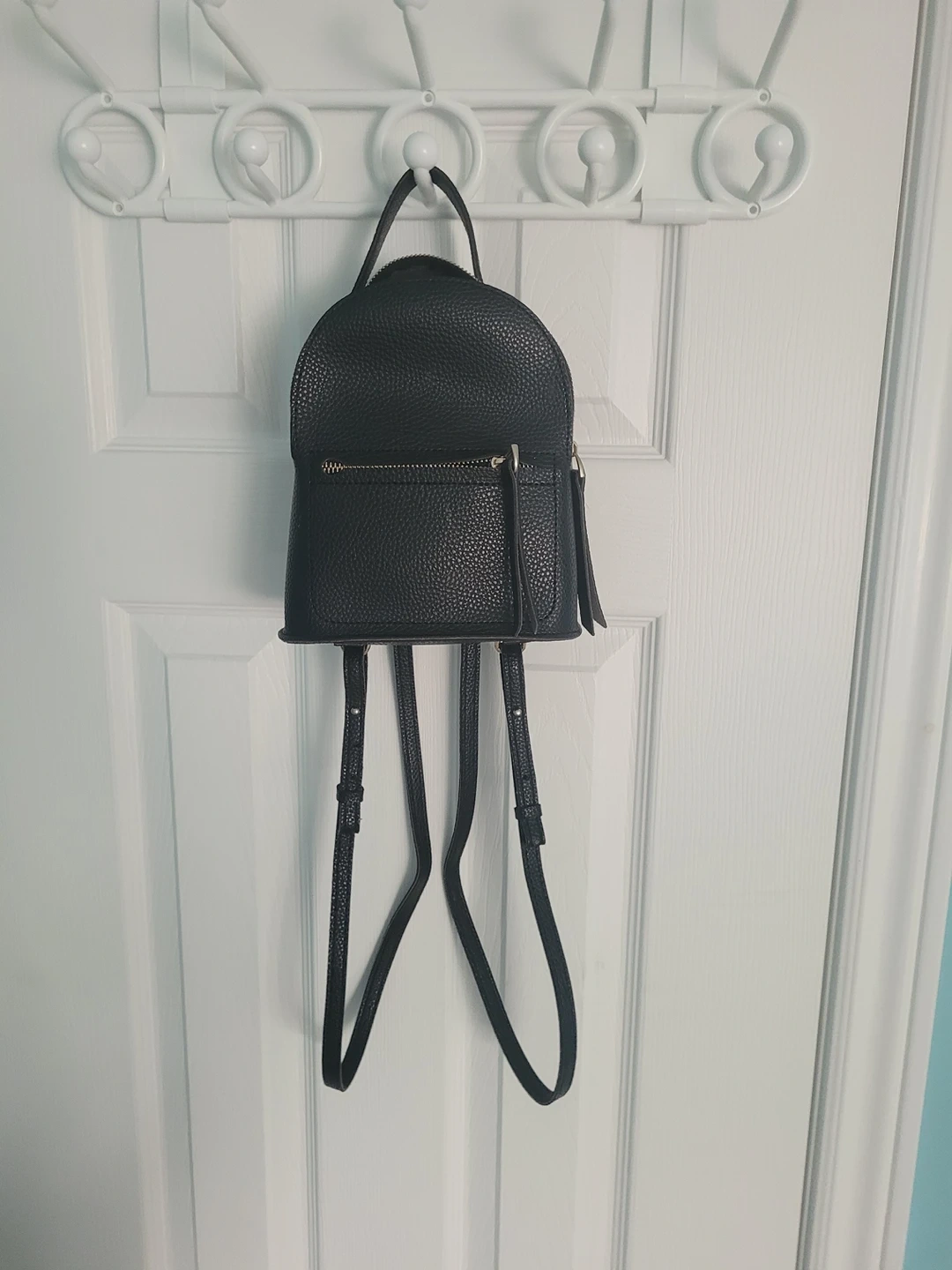 miniso black mini leather backpack, only used a few times. for reference I'm 156cm, in the last picture.