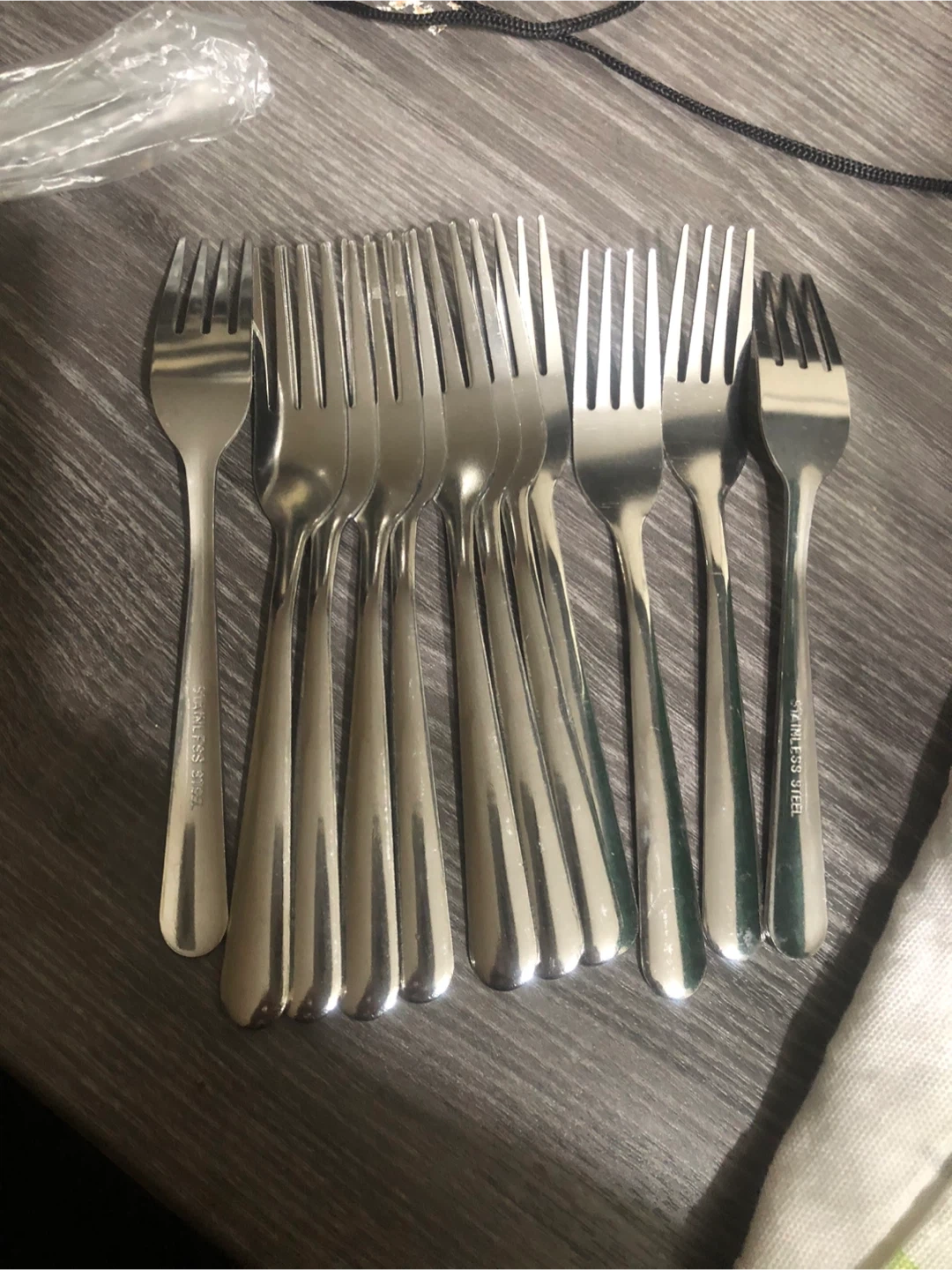 Selling a set of 24 stainless steel forks. They're in great shape and ready for a new home! Each fork is approximately 6 inches long.