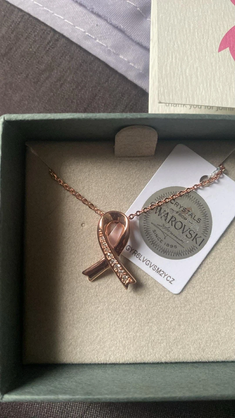 Selling a Swarovski rose gold ribbon necklace. It comes with its original box and packaging. This necklace is perfect for adding a touch of elegance to any outfit!