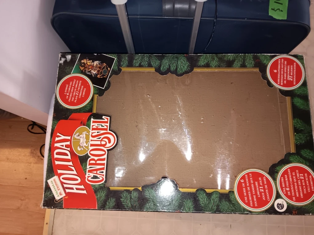I'm selling a Holiday Carousel musical decoration. The box includes 6 carousel figures that move to 21 melodies. It's a great piece for the holidays!