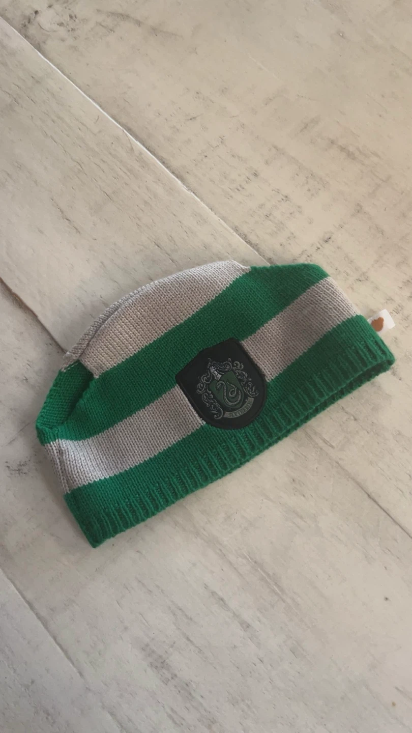 This is a Build-A-Bear plush toy dressed in Slytherin robes from the Harry Potter series. It includes the robe, scarf, sweater, and a Slytherin crest accessory. A great gift for any Harry Potter fan!