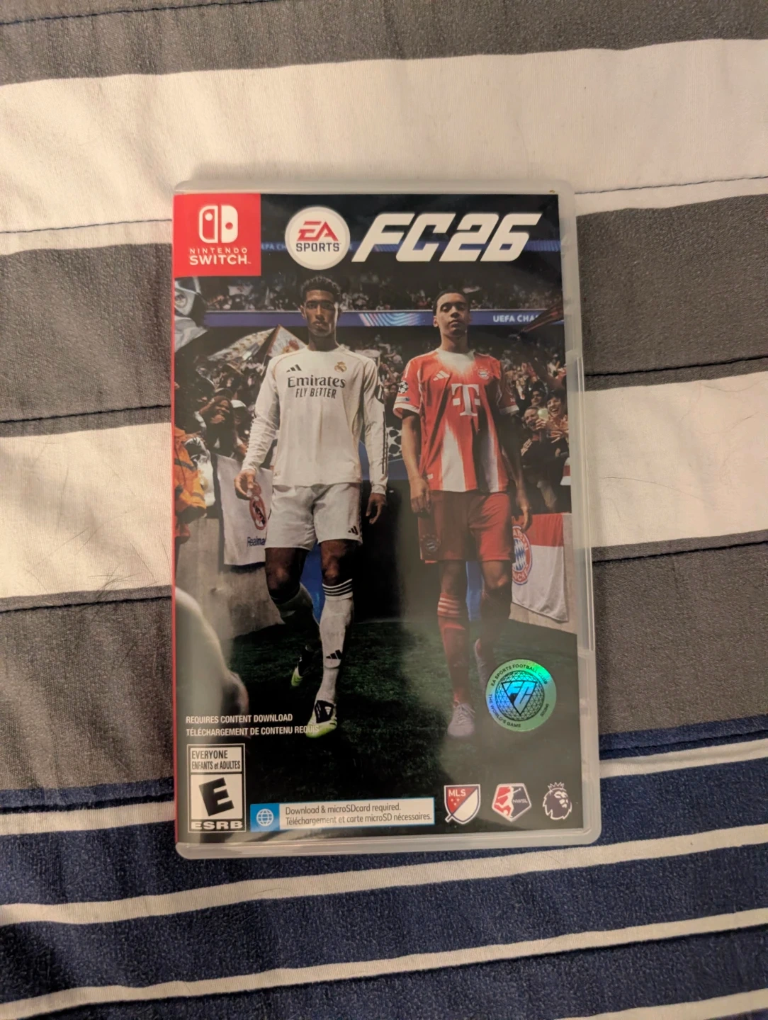 EA Sports FC 26 for Nintendo Switch. Download required. Supports 1-6 players online. This game is rated E for Everyone.