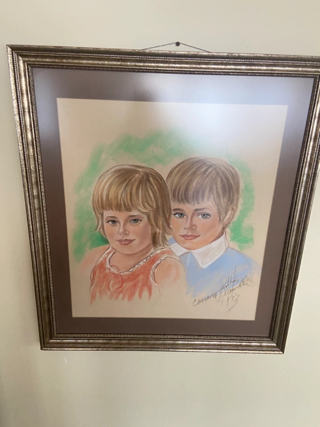 🏆Framed Pastel Portrait of Two Children Montreal artist 1973