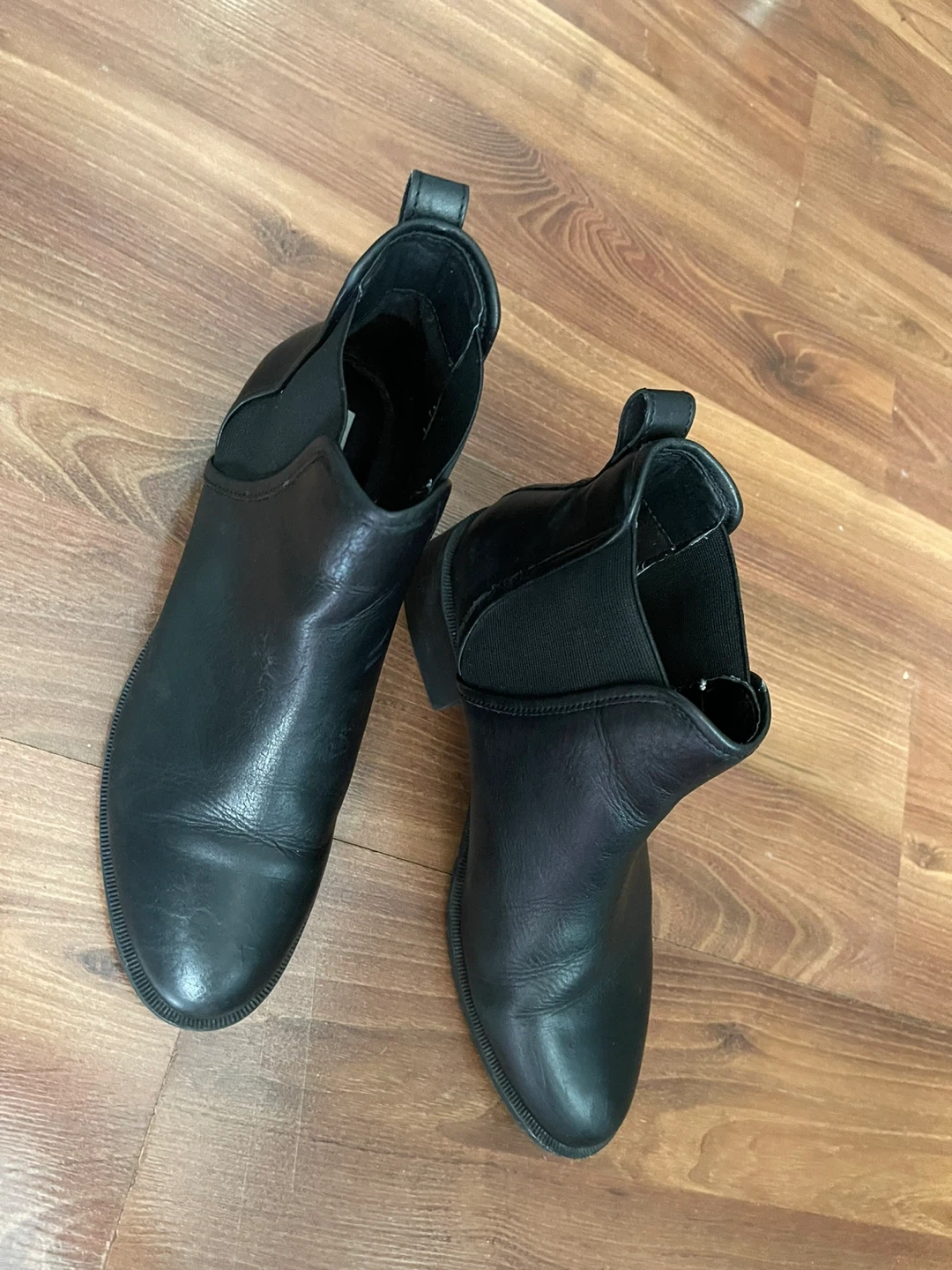 Selling a pair of Steve Madden black leather ankle boots in size 8.5