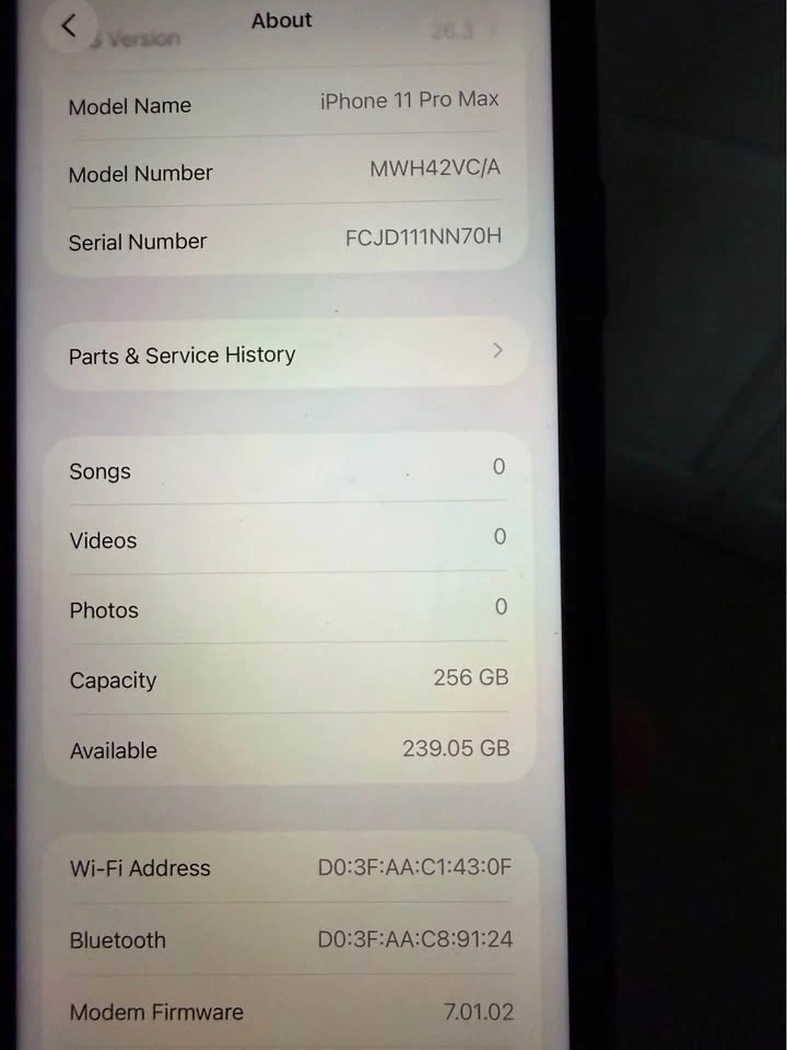 Selling an iPhone 11 Pro Max with 256GB of storage. It has 84% battery health and comes with its original box. Includes a used Lightning cable and power brick, plus barely used Lightning earphones. A new magnetic case is also included. The phone is in excellent condition with zero scratches or dents, looking brand new. Please note: the screen was recently replaced with a non-Apple screen.