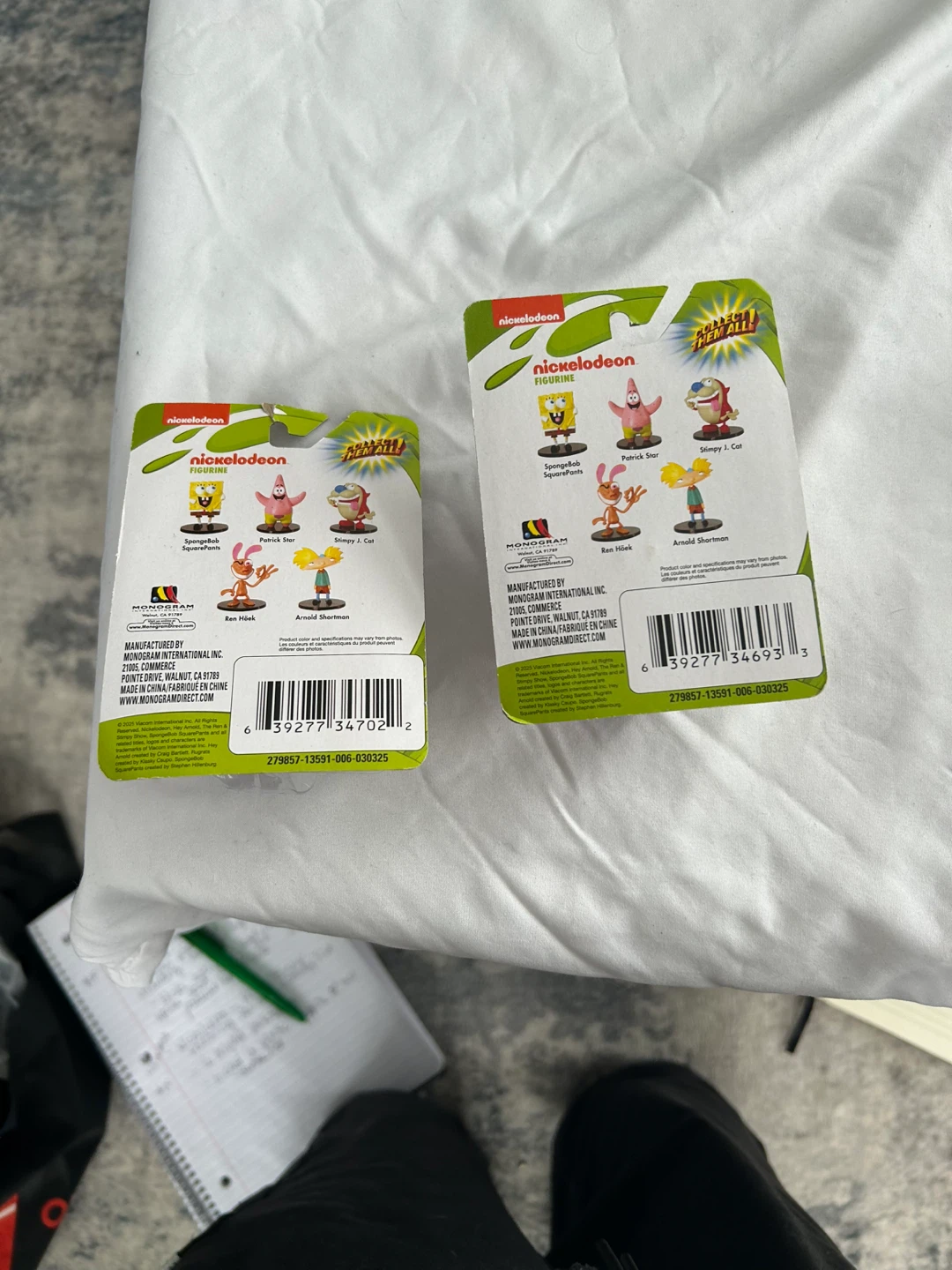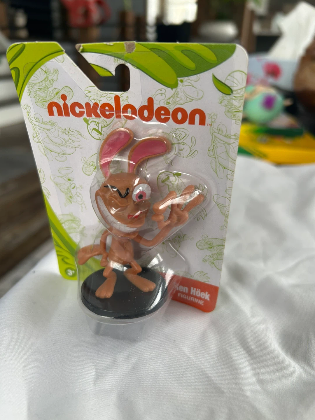 Two Nickelodeon Ren & Stimpy figurines, Ren Hoek and Stimpy J. Cat. They're in original packaging and suitable for ages 3 and up. Collectible items for fans of the show!