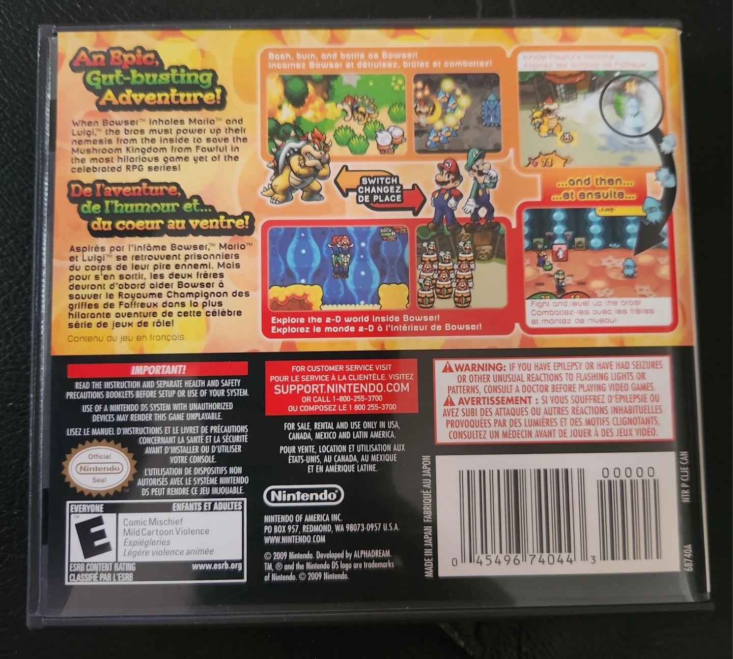 An epic, gut-busting adventure with Mario and Luigi! Explore the world inside Bowser. Includes game cartridge, inserts and manual.