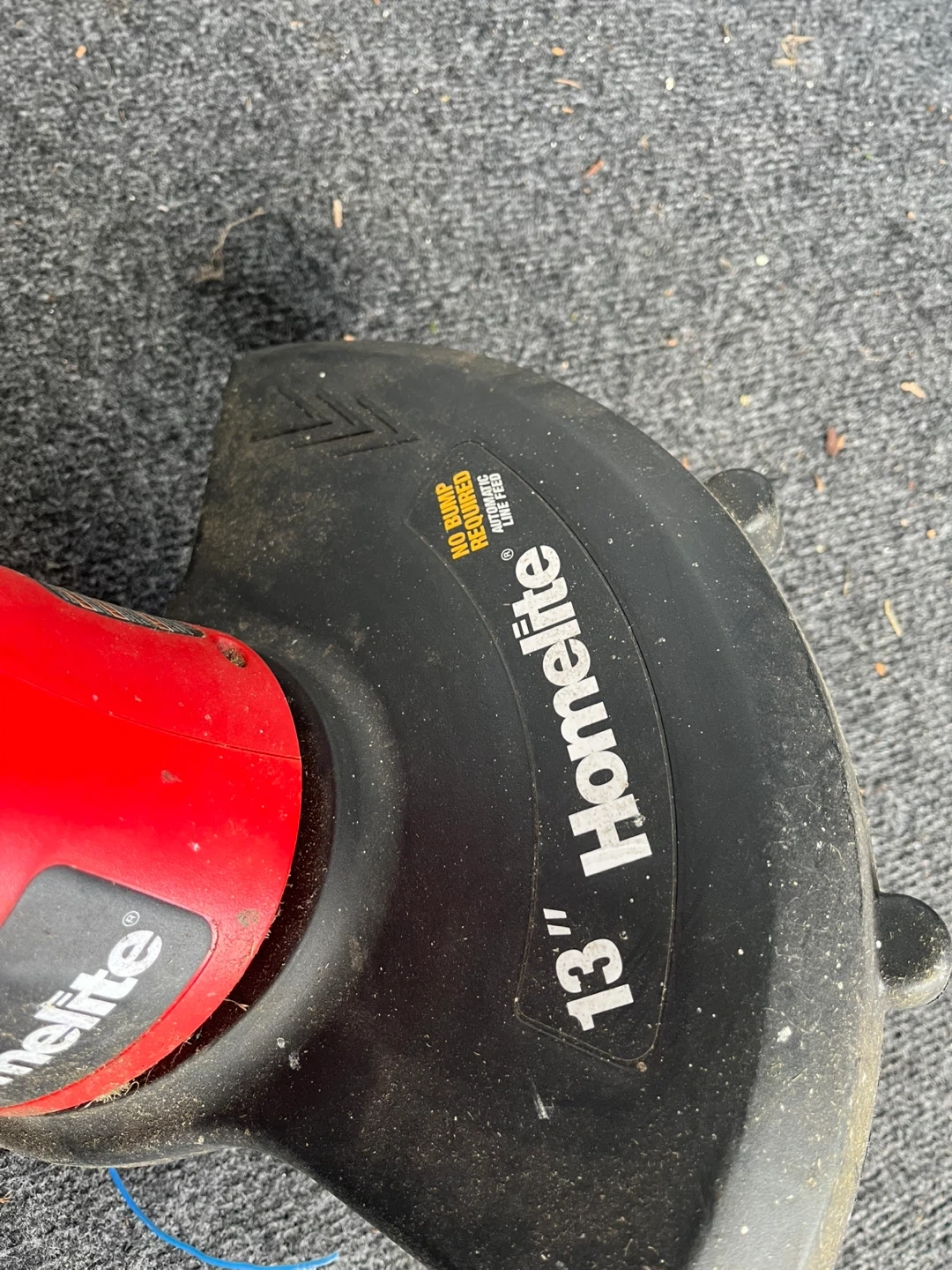 Buy & SellHomelite 13" Electric Duel String TrimmerHomelite 13" Electric Duel String Trimmer$50Red and black Homelite electric string trimmer. It's a 13" duel string. Works great. Can see it running upon purchase.ConditionLike newWHERE TO MEETFleetwoodView MapSELLERverifiedAlannahN Cloverdale W700 reviews0 chats·0 favorites·3 viewsSEND CHAT TO SELLERHi Alannah! I’m interested in your listing.Hi Alannah! I’m interested in your listing.Get the Karrot app to chatSign In to chat