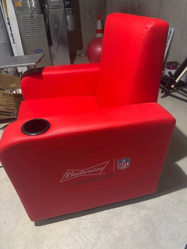 Comfortable chair for a man cave or just a casual nice chair to have around. Table rest comes out as shown in the pictures, hardly any damage practically new. 4 plugins on the right side of the chair by the table rest. Looking for $300 but willing to go lower.