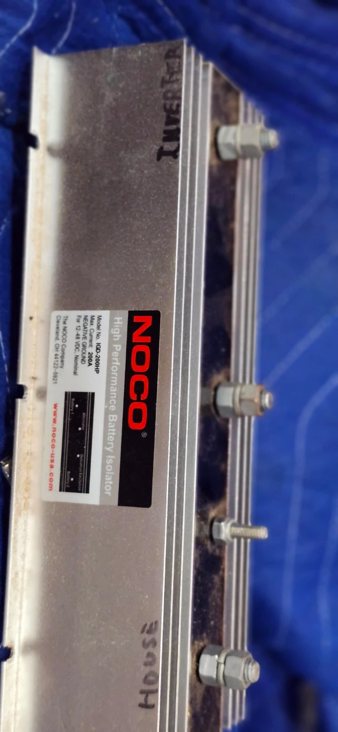 This is a NOCO High Performance Battery Isolator. It's rated for a max current of 200A and is designed for 12-48 VDC nominal systems. It features negative ground. Comes with manual