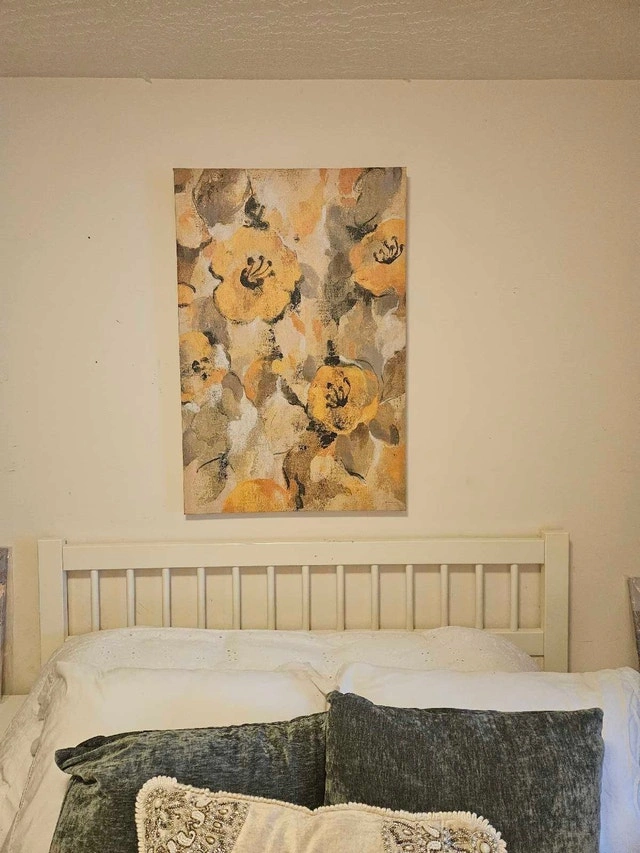 Large neutral floral abstract canvas, originally purchased for professional staging. Chosen for its broad appeal and ability to suit multiple design styles. Size: 36” x 24”. Can be hung vertically or horizontally. Brand new and never lived with. Soft, warm tones that work beautifully in bedrooms, living rooms, or entryways. A great statement piece without overpowering a space. Pickup near Costco.