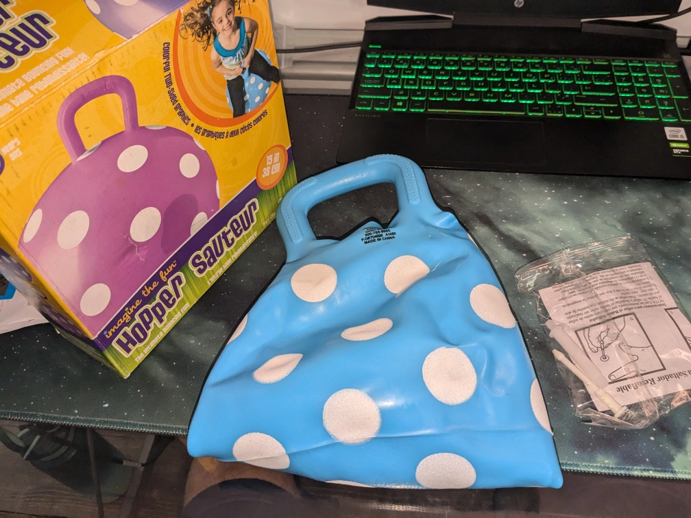 Energize your child's playtime with this never-used Inflatable Hopper Ball! Designed for ages 2 to 10, this 15-inch diameter ball in a cheerful light blue color offers both fun and fitness. It promotes great exercise and helps build coordination skills while ensuring safe, leak-free bouncing indoors or outdoors. Perfect for active play sessions, this durable ball is a must-have for any young adventurer's collection. Add a burst of joy and movement to your child's day!