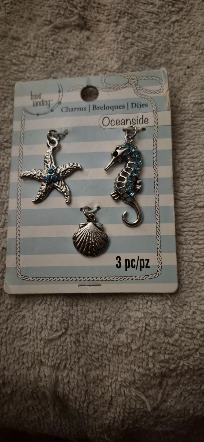 Selling a set of three Bead Landing charms with a seaside theme! The set includes a starfish, seahorse, and seashell charm, perfect for adding a touch of the ocean to your crafts. These charms are nickel-free!