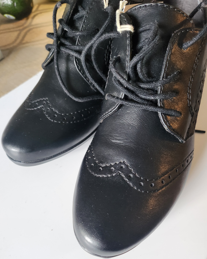 Black leather heeled vintage styled brogue shoes. Lace up style. UK Size 7, USA 9. Excellent condition, never worn.