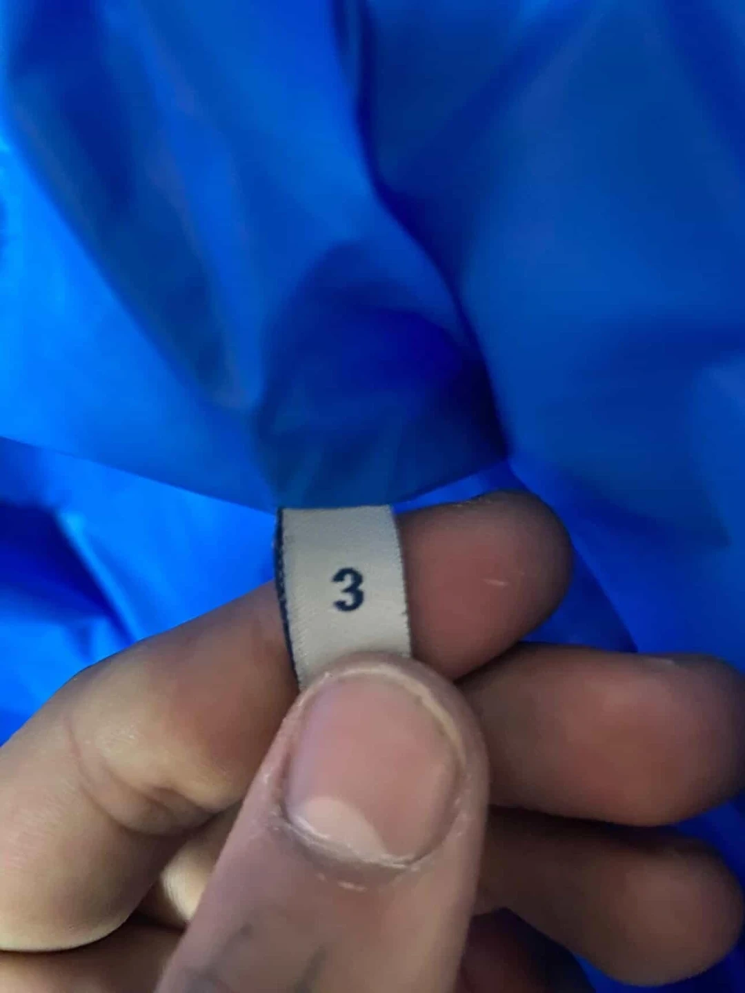 Moncler jacket in blue. Size is 3. Made with down for warmth. This jacket's care instructions are printed on the tag.