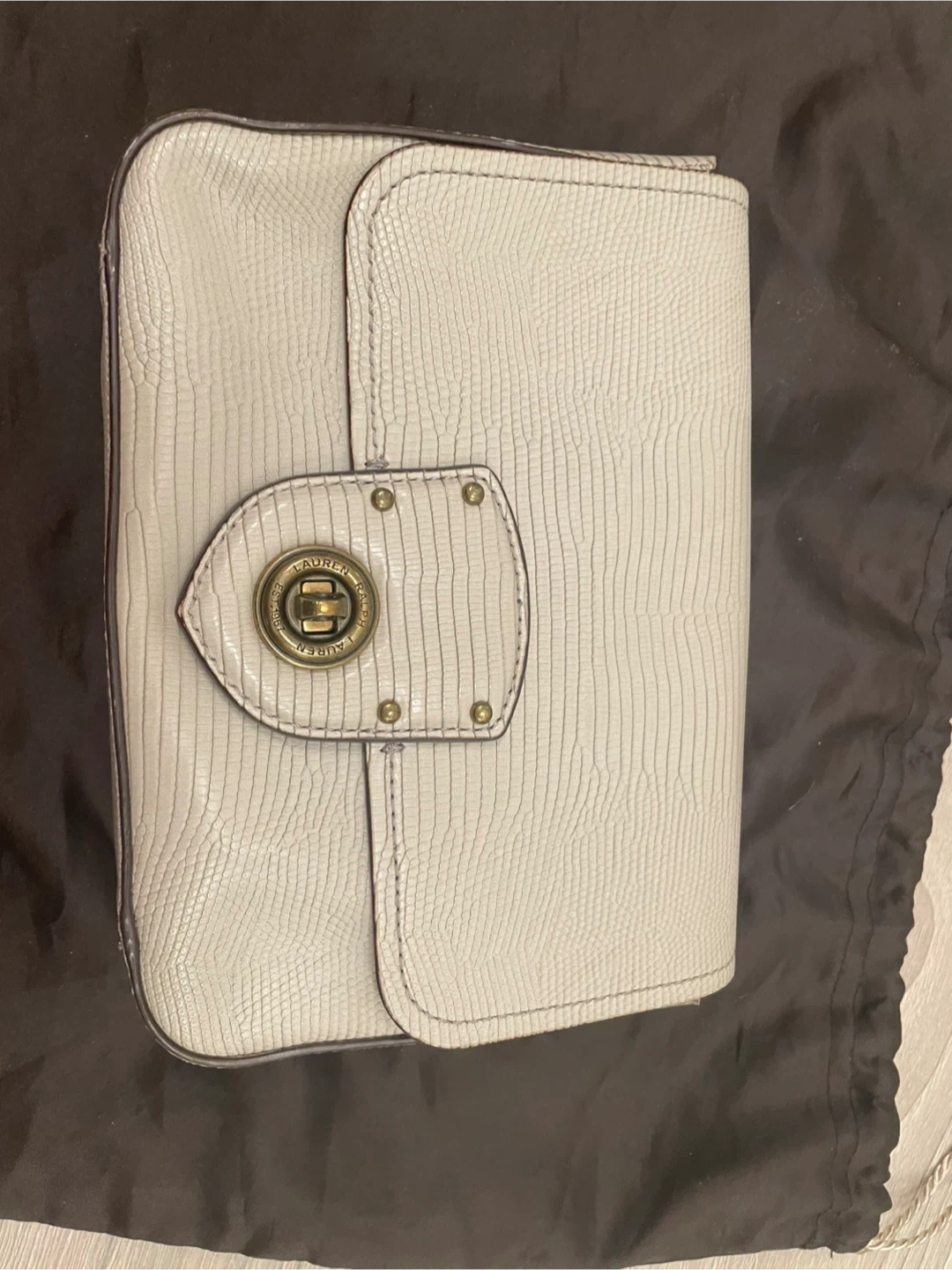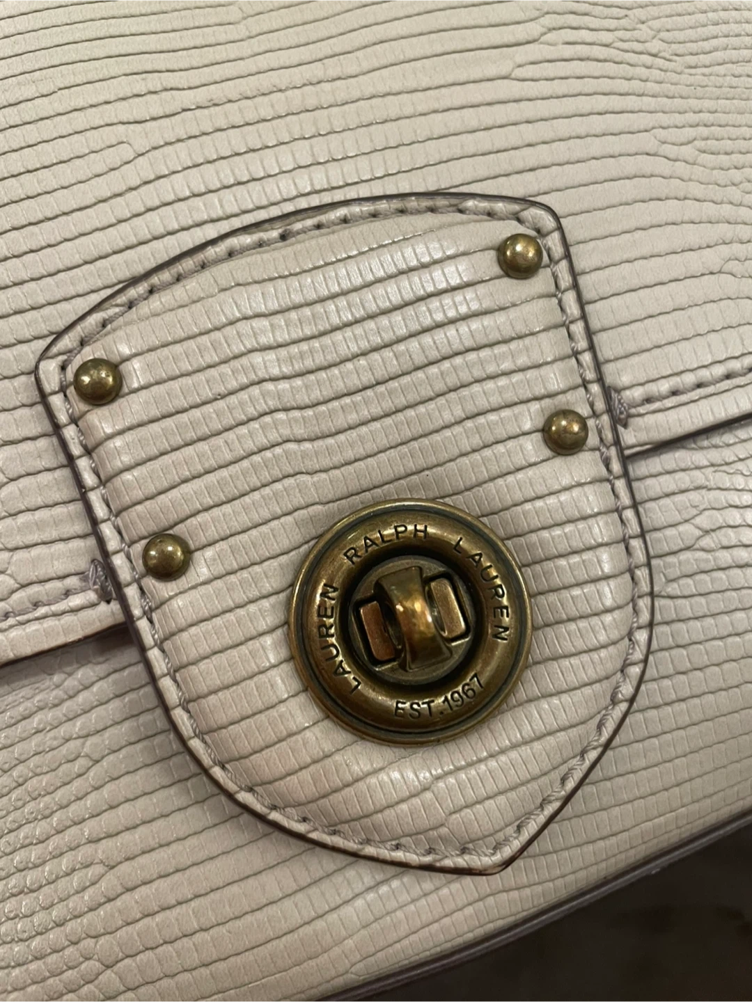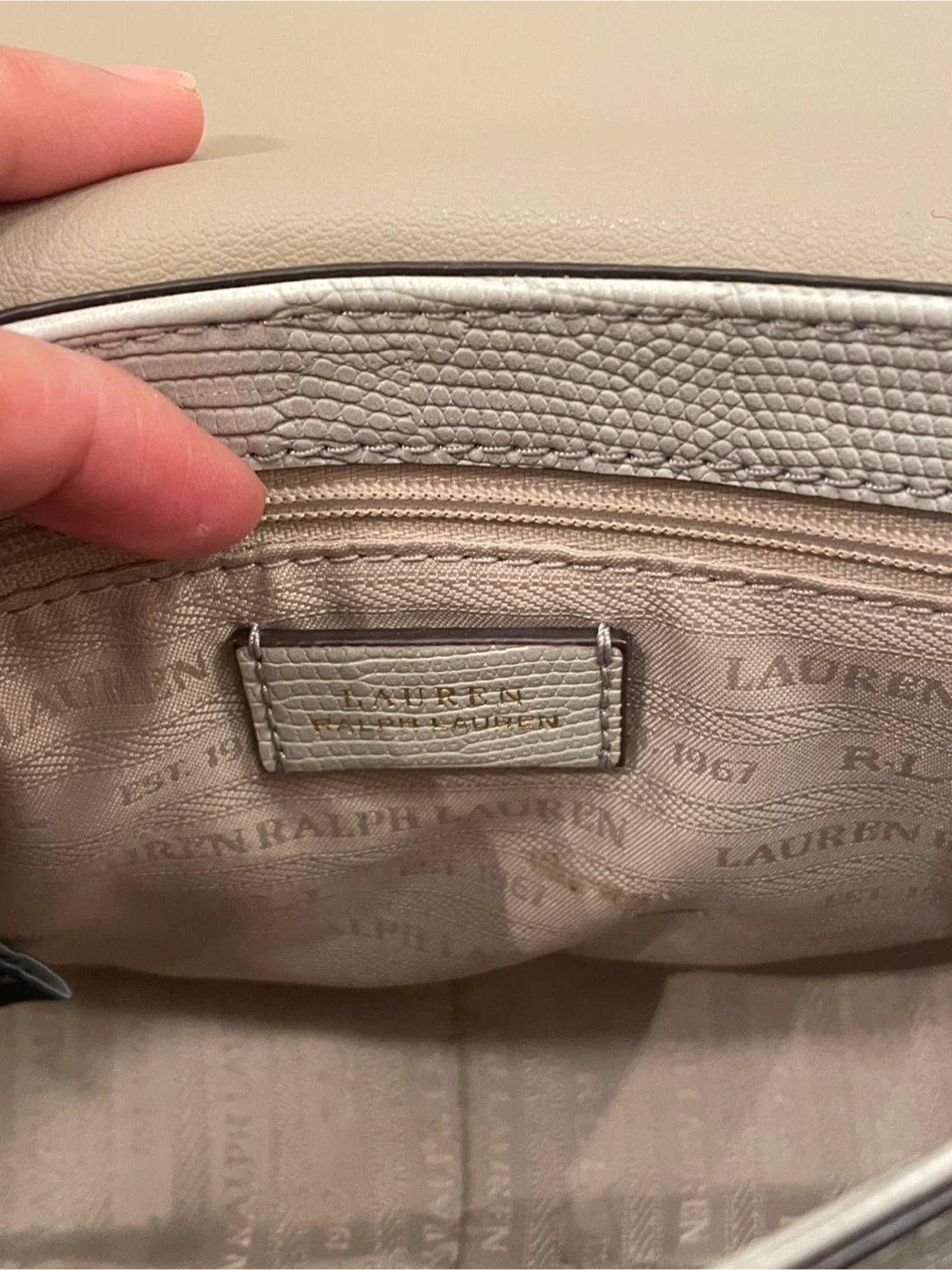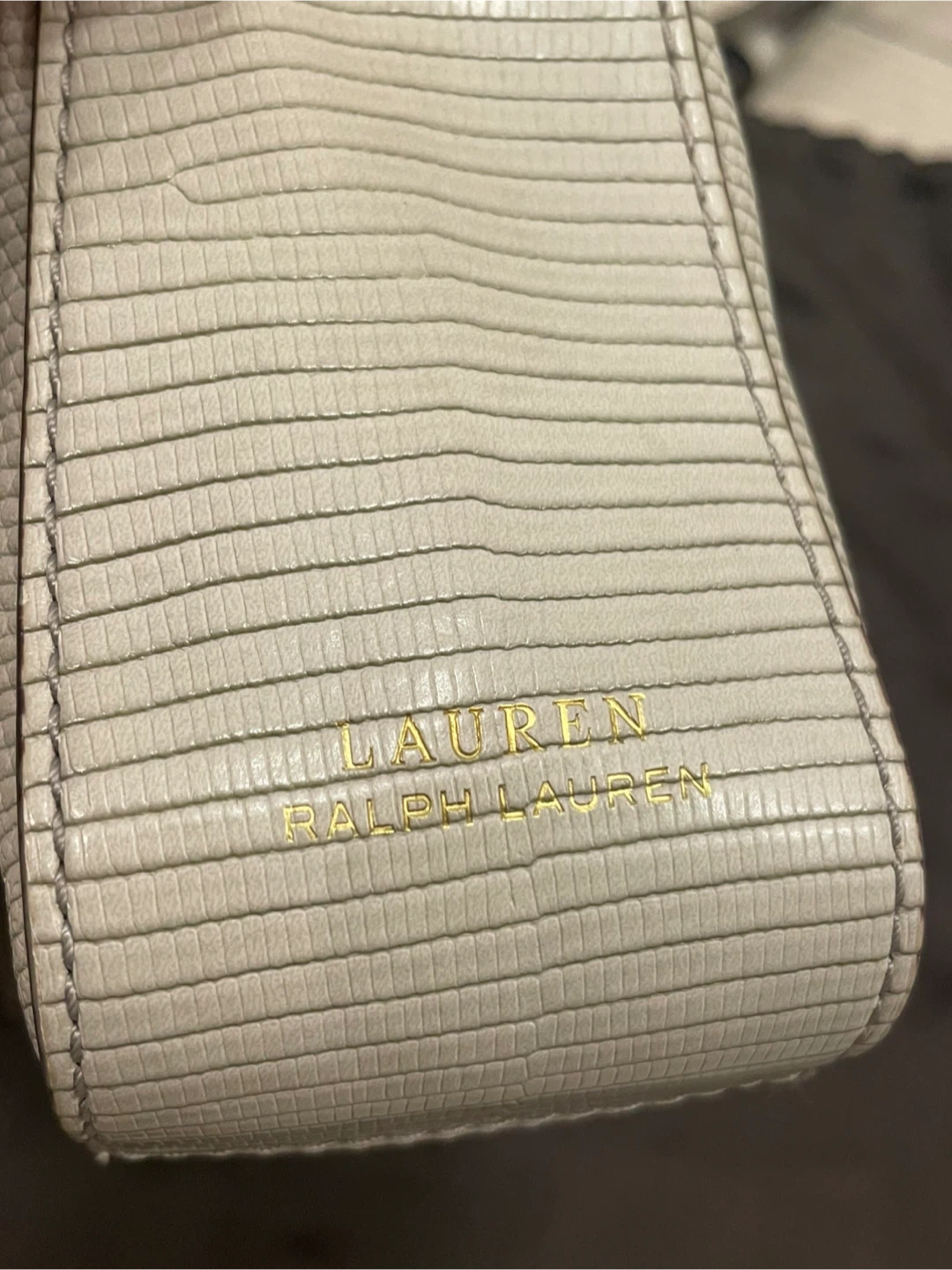 Embossed gold "LAUREN RALPH LAUREN" branding on side and interior leather plaque.