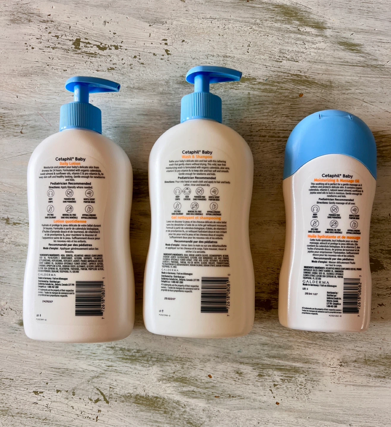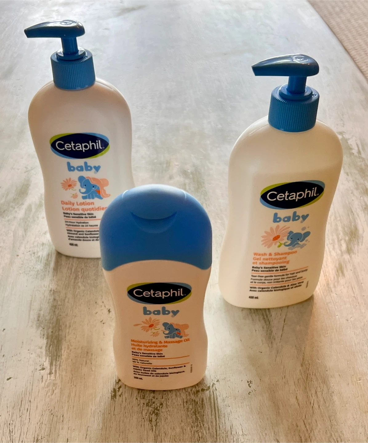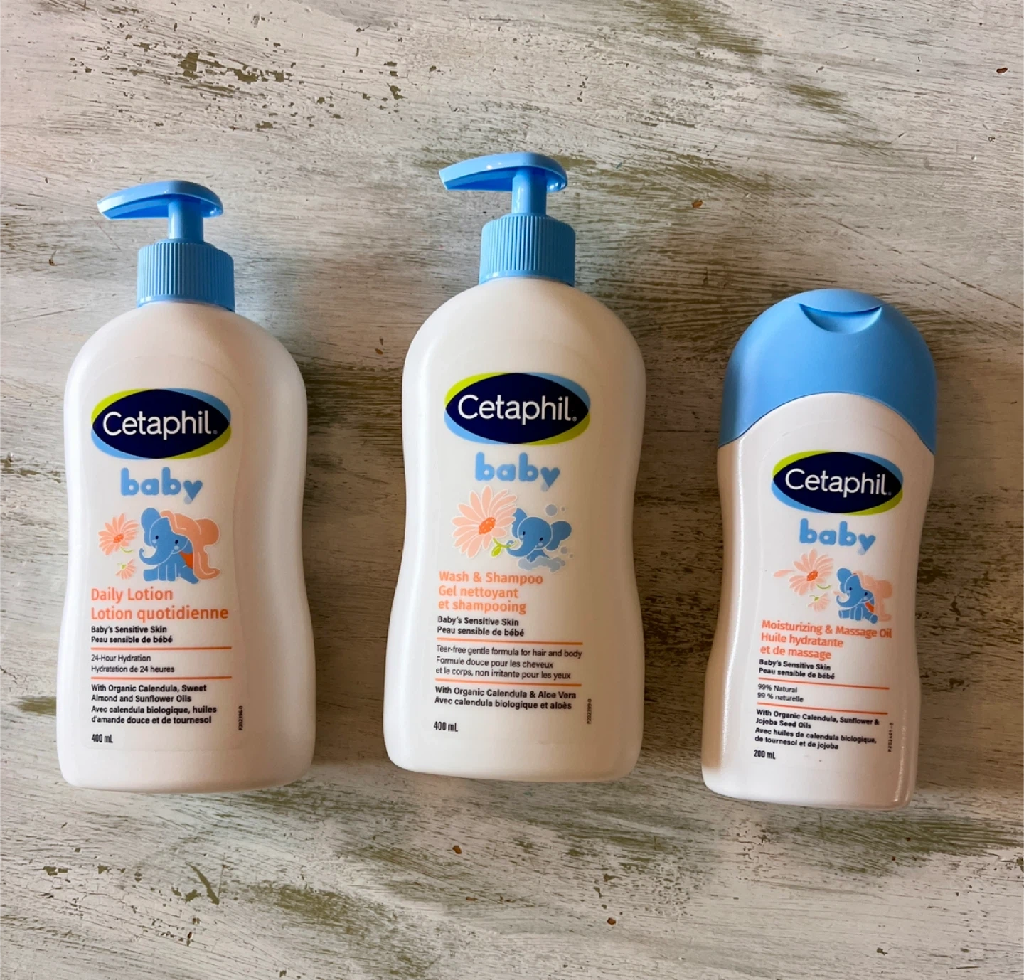 This bundle includes Cetaphil Baby Daily Lotion, Cetaphil Baby Wash & Shampoo, and Cetaphil Baby Moisturizing & Massage Oil. All are designed for baby's sensitive skin.