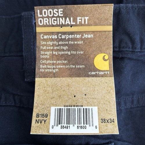 Carhartt Pants Men's 38x34 Navy B159 Carpenter Canvas Loose Original Fit - New. Pant is brand new. Thanks for stopping by.