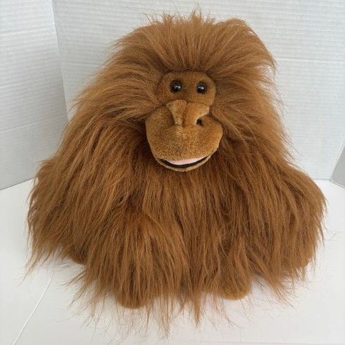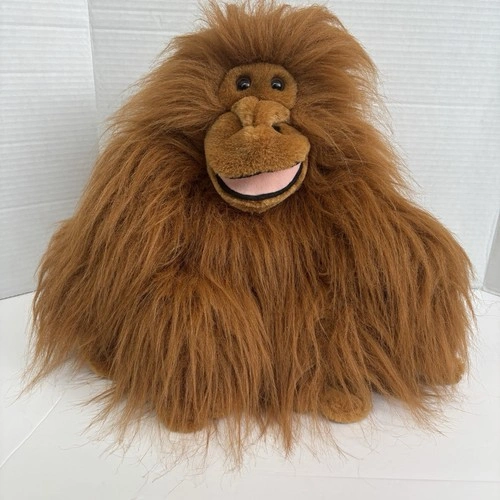 Vintage 1988 Chrisha Playful Plush - Brown Shaggy Orangatang Monkey Plush 14". Orangutang's hands stick with hook-and-loop fastener. Overall in very good condition.