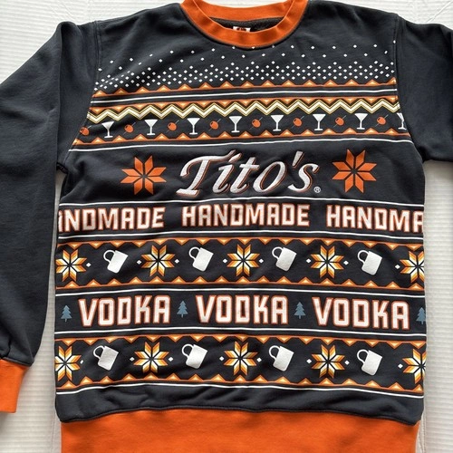 Titos Vodka Sweater Adult Small Gray - Orange Ugly Christmas Holiday Sweatshirt