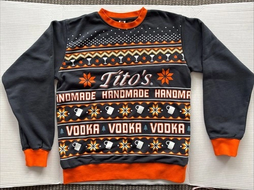 Titos Vodka Sweater Adult Small Gray-Orange Ugly Christmas