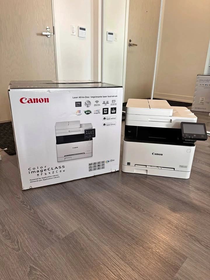 Pickup Only, Cash Only downtown Toronto (Lower Jarvis & Queens Quay East). Price is Firm. It’s available as long as this post is still up. Comes with original box (includes power cable). -support AirPrint - 5 inch display - black/ colour printing - super fast laser printer. I do have one extra canon 054 blue toner, if purchase with the printer, can get it for extra $60, retail price $120
