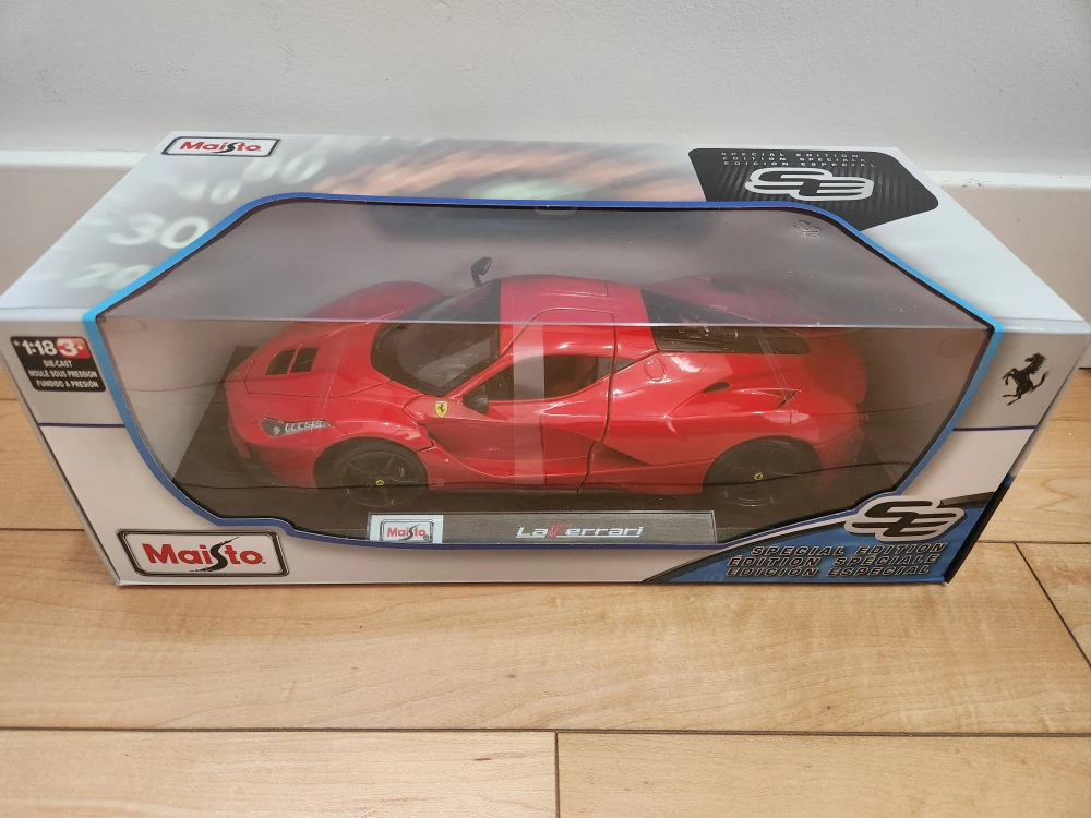Selling a Maisto LaFerrari diecast model car in 1:18 scale. Brand new and still in the box. It's a special edition model with die-cast metal and plastic parts. Comes from a smoke and pet free home.
