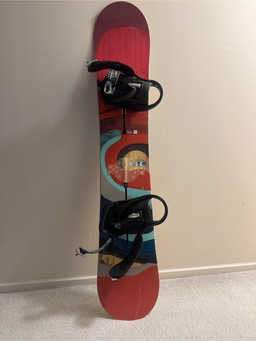 Selling a used Burton Custom snowboard. It has some signs of wear but is still in good condition for hitting the slopes! Custom 156 and Flying V. Perfect for someone looking for a reliable board.