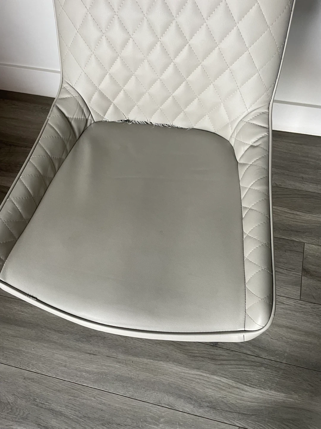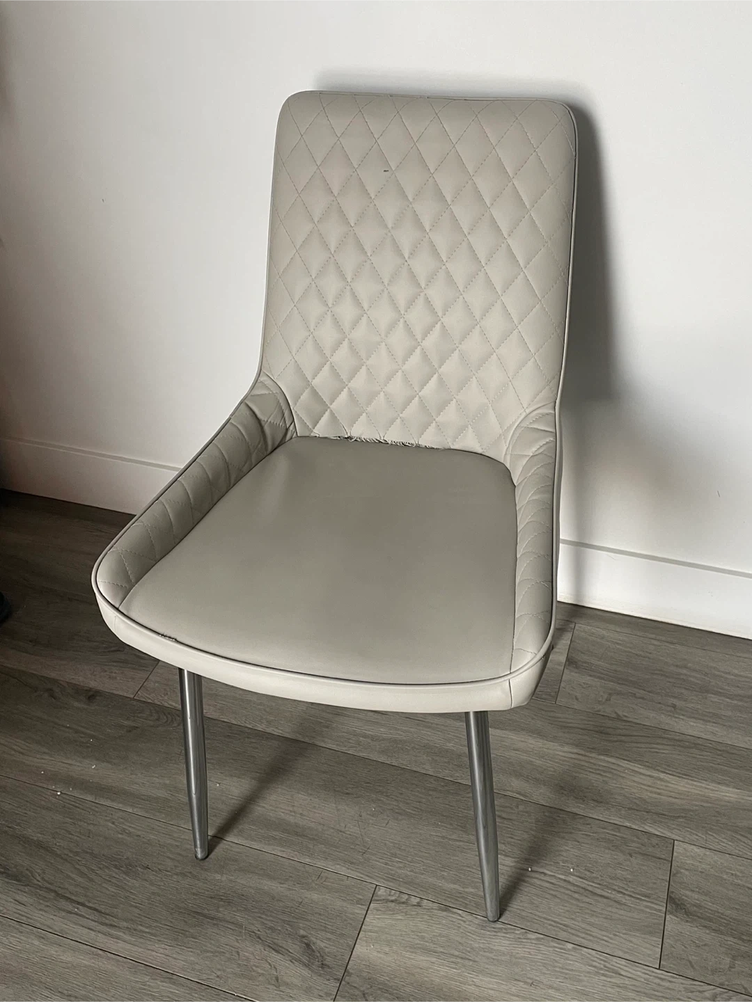Grey Leather Dining Chair. There Are Some Visible Wear Shown On The Chair. Cash & Pick Up Only Can’t Deliver. FIRST COME FIRST SERVE NO HOLDS.