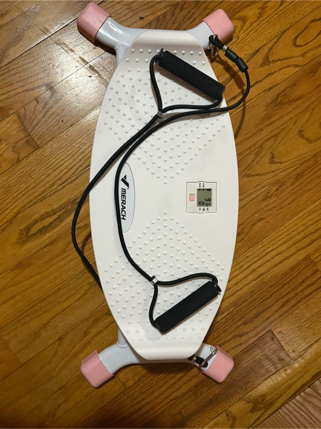 Get a fun workout with this Merach waist twisting disc! It comes with resistance bands to help you tone your arms and upper body while you twist. The digital display tracks your reps, time, and calories burned. It's in great condition and ready for a new owner!