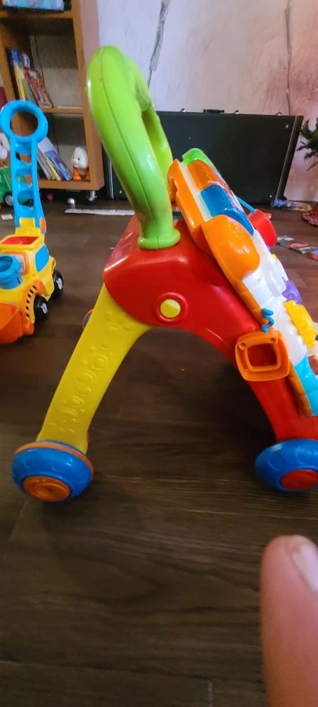 This is a VTech Sit-to-Stand Learning Walker. It's in good condition and ready for a new little one to enjoy! It has lots of fun activities and sounds to help your baby learn and explore