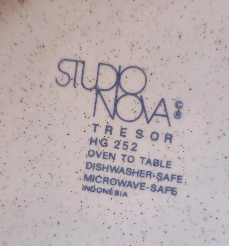 I'm selling a set of Studio Nova Tresor cups and saucers. They are oven to table, dishwasher-safe, and microwave-safe. They're in great condition!