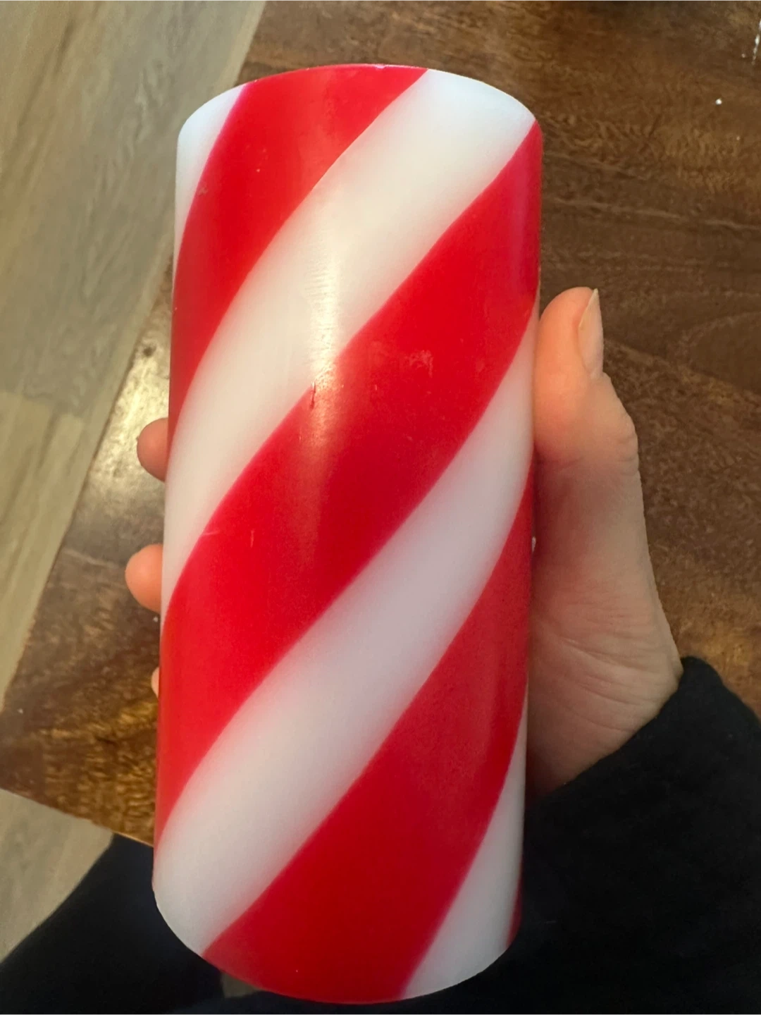 Selling a GlucksteinHome 'Very Merry' candle! It features a festive red and white spiral design.