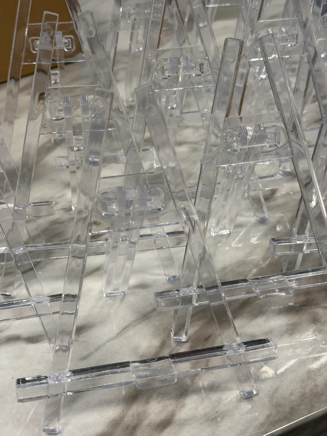 Selling these small clear plastic easel stands! They're perfect for displaying small items.