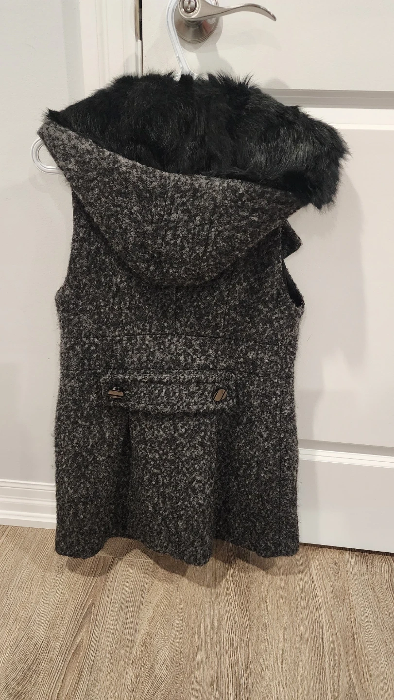 Selling a stylish Mixtié vest in a mix of black and grey. It features a real fur hood and is in great condition. The size S/M.
